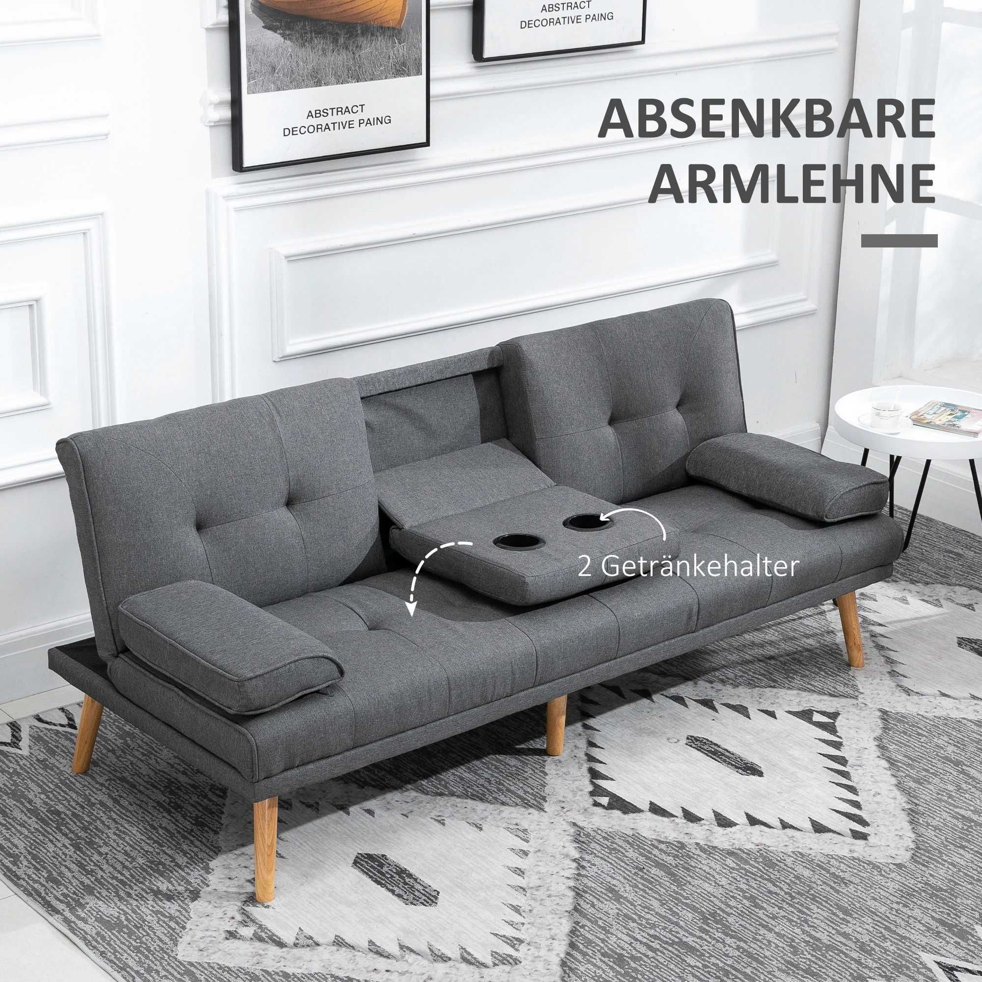 HOMCOM Sofa do spania 3-osobowa, rozkładana, wykończenie imitujące len