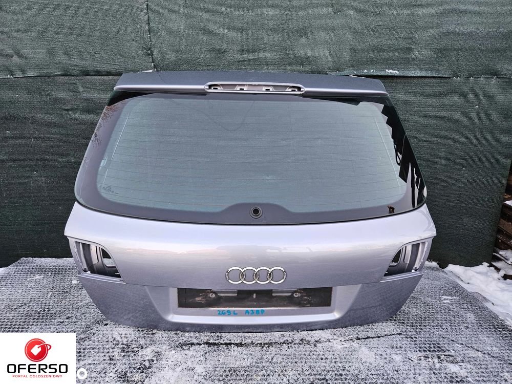 Klapa Bagaznika Szyba Srebrna Szara Audi A3 8P Sportback 5 D Drzwi. Widoczna na zdjeciach. Cena za klape jak na zdjeciach. Oryginalna AUDI. Niestety nie znam kodu koloru. Gwarancja rozruchowa 14dni.