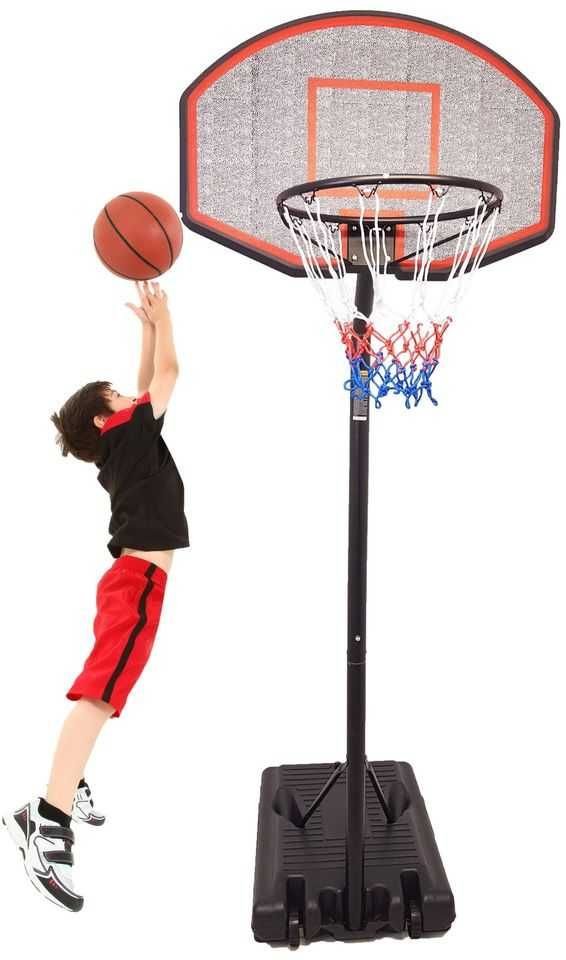 Koszykówka od wielu lat jest jednym z najpopularniejszych sportów zespołowych zarówno w Polsce, jak i na Świecie. Młody adept tego rewelacyjnego sportu z prezentowanym zestawem w prosty sposób będzie mógł się wcielić w największe gwiazdy NBA, ćwicząc rzuty wolne, wsady lub po prostu bawiąc się z kolegami wedle swoich zasad. Dzięki kompletnemu zestawowi do gry w koszykówkę zapewnisz swojemu dziecku nie tylko super zabawę — aktywność ta znacznie polepszy jego kondycję fizyczną, przyczyni się do rozwoju koordynacji ruchowej i bardzo istotnej umiejętności współpracy w grach zespołowych. Zestaw ten z pewnością zapewni wiele godzin rewelacyjnej zabawy w gronie kolegów lub rodziny. Aby zwiększyć stabilność zabawki podstawa musi zostać wypełniona wodą lub piaskiem - w przeciwnym wypadku konstrukcja może się przewracać od rzutów piłką. Zestaw posiada regulowaną wysokość, dzięki czemu będziesz w stanie dobrać odpowiedni rozmiar dla swojego małego koszykarza.