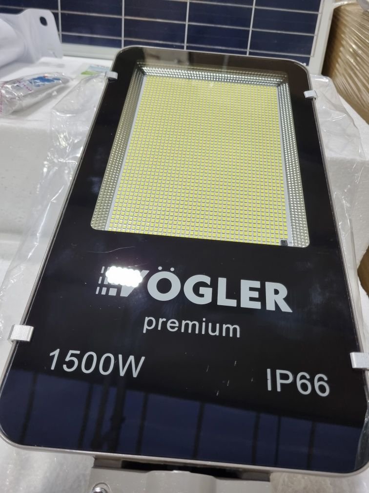 100% Aluminiowa LAMPA SOLARNA ULICZNA , firmy VÕGLER GmBh - unikatowa wersja PREMIUM 1500 W- wbudowane aż 2000 wysokowydajnych diód led SMD mod: 2835 Full Spectrum o wydajności 130 lm/W. Kąt emisji światła wynosi 120 stopni