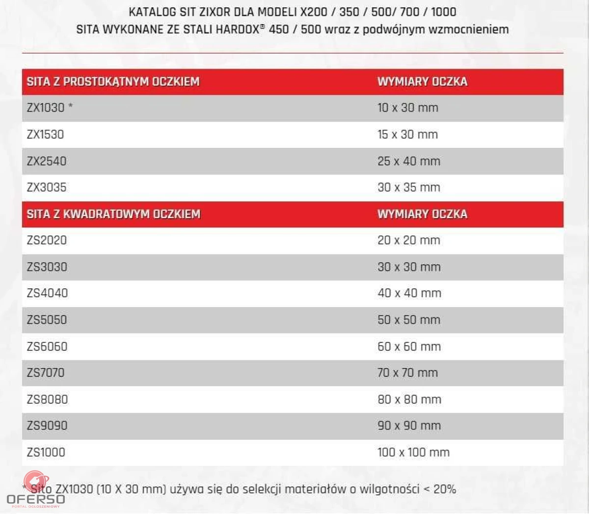 Materiał sito: Stal HARDOX 450®
