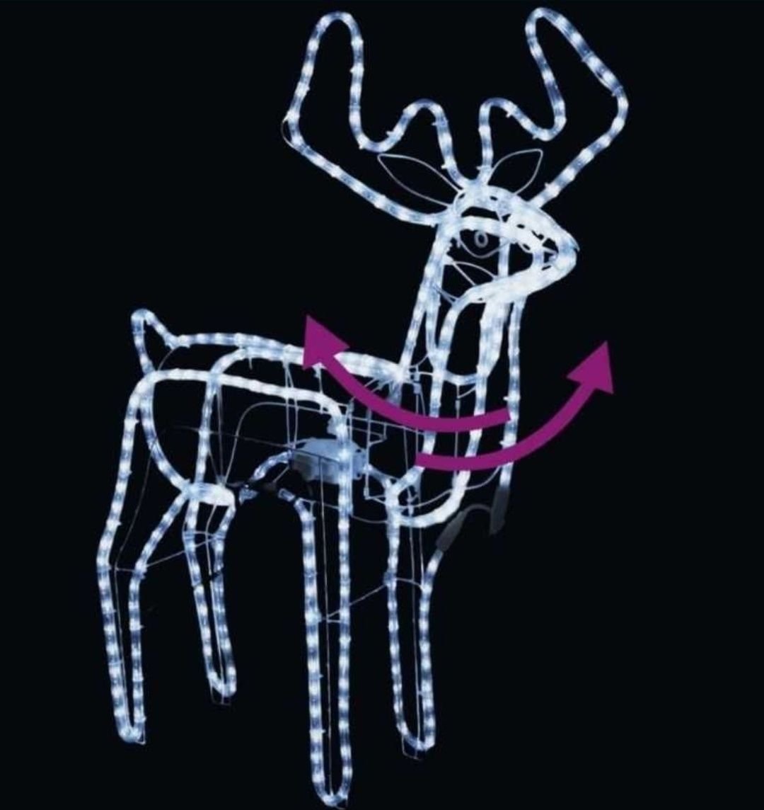 Renifer świecący led z ruchomą głową, Ozdoba świąteczna ,wąż 13 metrów