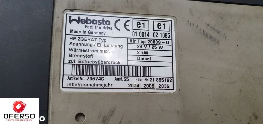 AUKCJA DOTYCZY: WEBASTO AIR TOP 2000 S - D