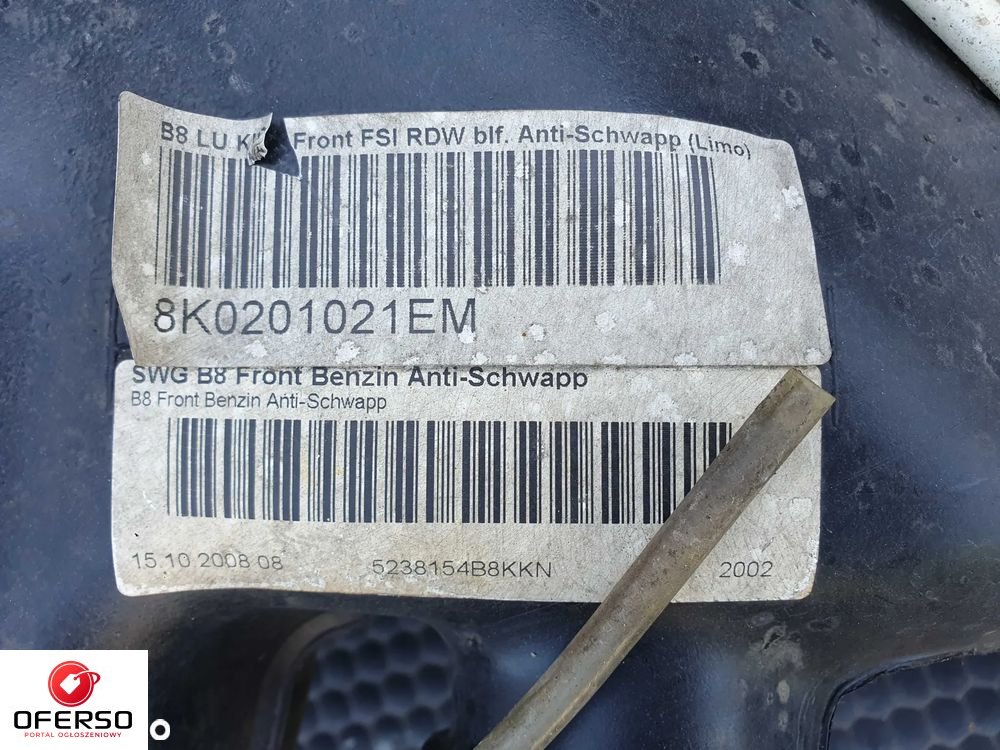 Zbiornik Paliwa 8K0201021EM 8K0919051M Bak Korek Wlew Pompa Pompka Benzyna 1.8 2.0 TFSI Audi A4 B8 A5 8T Oska